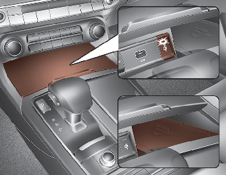 Lorsqu'un téléphone intelligent sans la fonction de charge sans fil ou qu'un objet métallique est placé sur le bloc de charge, un petit bruit peut s'entendre. Ce petit bruit est dû à la capacité du véhicule à discerner l'objet placé sur le bloc de charge. Il n'affecte en aucun cas votre véhicule ou le téléphone intelligent.