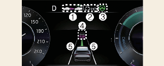Indicateur d'aide à la conduite sur autoroute, s'il y a un véhicule devant vous et le niveau de distance sélectionné s'affiche.