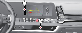 Appuyer sur le bouton du système d'info-divertissement (3) ne désactivera pas la vue arrière lorsque le rapport est en position R (marche arrière).
