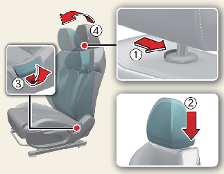 If you recline the seatback towards the front with the headrest and seat cushion raised, the headrest may come in contact with the sun visor or other parts of the vehicle.