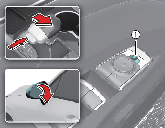 Press a corresponding point on the mirror adjustment control (2) to position the selected mirror up, down, left or right.