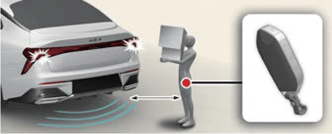 NOTICEDo not approach the detecting area if you do not want the trunk to open. If you have unintentionally entered the detecting area and the hazard warning lights and chime starts to operate, leave the detecting area with the smart key. The trunk will stay closed.