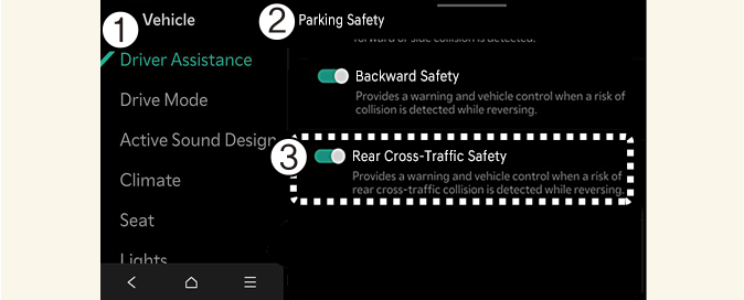 Rear Cross-Traffic Collision-Avoidance Assist settings