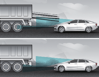If the vehicle in front of you has cargo that extends rearward from the cab, or when the vehicle in front of you has higher ground clearance, additional special attention is required. Forward Collision-Avoidance Assist may not be able to detect the cargo extending from the vehicle. In these instances, you must maintain a safe braking distance from the rearmost object, and if necessary, steer your vehicle and depress the brake pedal to reduce your driving speed in order to maintain distance.