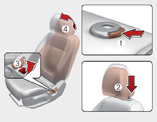If you recline the seatback towards the front with the headrest and seat cushion raised, the headrest may come in contact with the sun visor or other parts of the vehicle.
