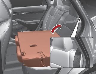 When you fold the rear seatback, insert the buckle between the rear seatback and cushion. Doing so can prevent the buckle from being damaged by the rear seatback.
