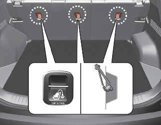 Child restraint hook holders are located on the shelf behind the rear seats.