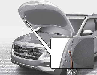 Open the hood after turning off the engine on a flat surface, shifting the shift lever to the P (Park) position and setting the parking brake.