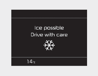 If the icy road warning appears while driving, you should drive more attentively and refrain from speeding, rapid acceleration, sudden braking or sharp turning.