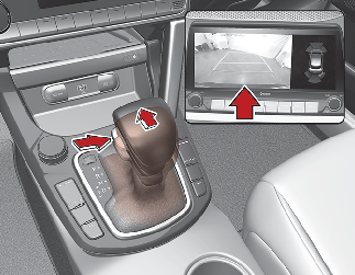 Rear View Monitor with parking guidance will activate when the engine is running and the shift lever is in the R (Reverse) position.