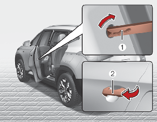 Use the rear door safety locks whenever children are in the vehicle. If a child accidently opens the rear doors while the vehicle is moving, he or she may fall out.