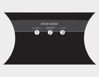 The driving mode automatically changes to SMART SPORT, when you abruptly accelerate the vehicle or repetitively operate the steering wheel (Your driving is categorized to be aggressive.). In this mode, your vehicle drives in a lower gear for abrupt accelerating/decelerating and increases the engine brake performance.