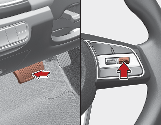 The driver starts driving by pushing the switch up (RES+)/down (SET-) or depressing the accelerator pedal, after the vehicle is stopped by Smart Cruise Control with no other vehicle ahead.