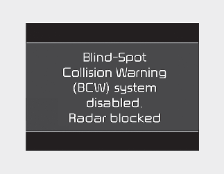 If there is a problem with Blind-Spot Collision Warning, a warning message will appear. The function will turn off automatically. Rear Cross-Traffic Collision-Avoidance Assist will not operate also if Blind-Spot Collision Warning turns off due to malfunction. You should have the vehicle inspected by an authorized Kia dealer.