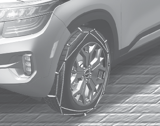Wrong size chains or improperly installed chains can damage your vehicle's brake lines, suspension, body and wheels. Therefore, when installing snow chain, follow the manufacturer's instructions and mount them as tightly possible. Drive slowly (less than 30 km/h (20 mph)) with chains installed.