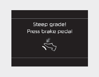 If the vehicle is held on a hill by applying the accelerator pedal or by creeping with brake pedal disengaged, the clutch and transmission may overheat which can result in damage. At this time, a warning message will appear on the LCD display.