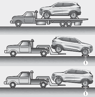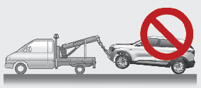 If you tow the vehicle while the front wheels are touching the ground, the vehicle motor may generate electricity and the motor components may be damaged or a fire may occur.