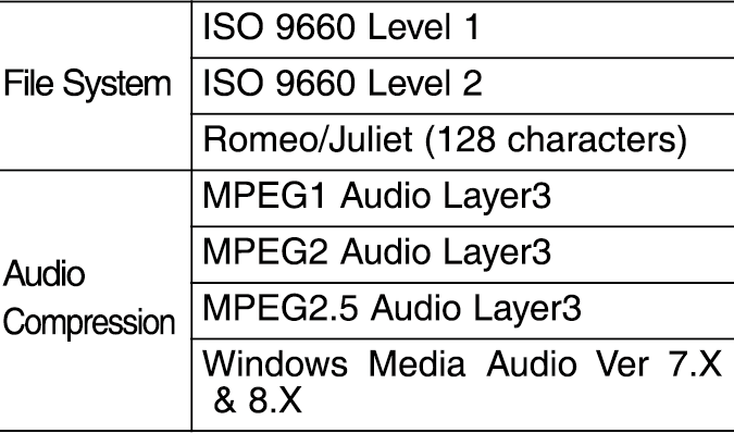 變更 MP3/WMA 檔案副檔名或將其他副檔名的的檔案變更至 MP3/WMA 會導致產品故障。