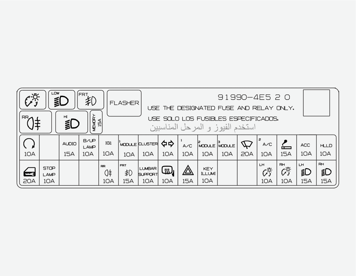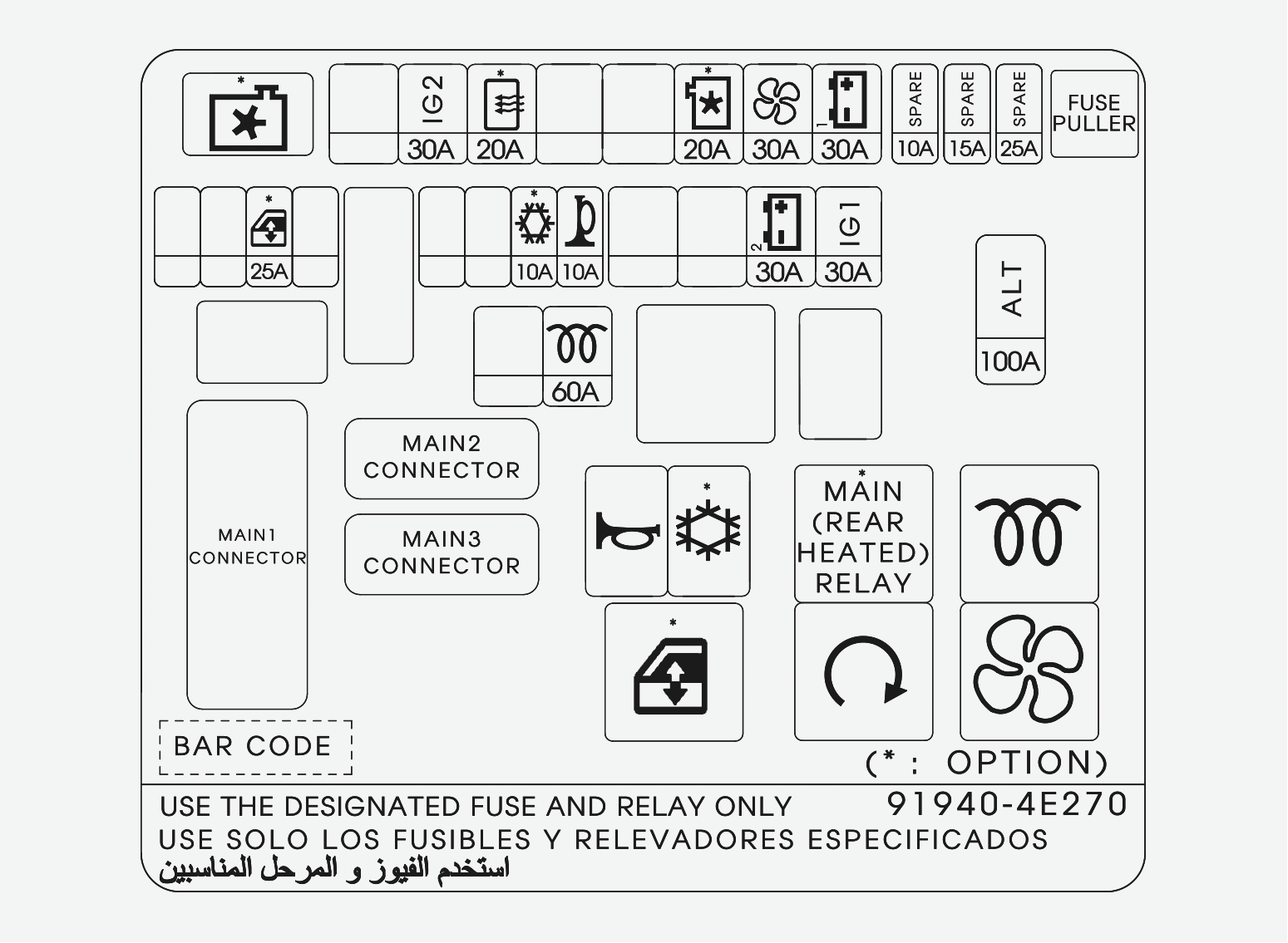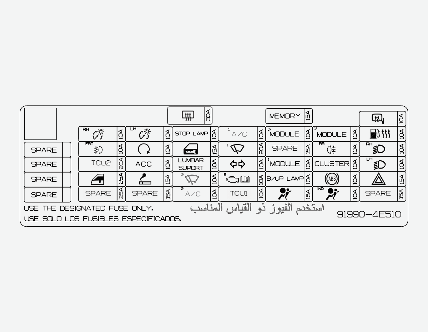 實際保險絲盒標籤根據車輛配置的不同可能有所不同。
