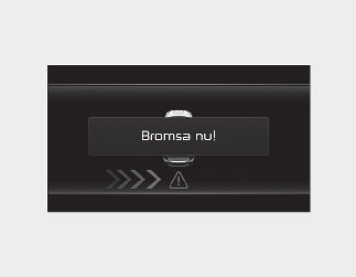 Om funktionen hjälper föraren att bromsa, måste föraren omedelbart trycka ned bromspedalen och se sig om i omgivningen.