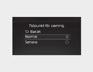 Varningstiden är inställd som ”Normal” när bilen levereras.