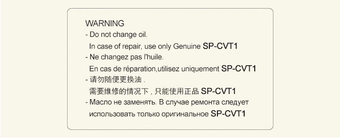 *5. Utilisez uniquement le fluide de transmission variable intelligente d'origine spécifié. L'utilisation d'un liquide non recommandé (même s'il est présenté comme compatible) peut entraîner une détérioration des changements de vitesse, des vibrations, voire une défaillance de la boîte de vitesse
