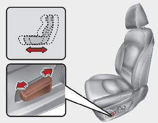 Tirer sur la partie avant du commutateur vers le haut pour lever ou appuyer vers le bas pour abaisser la partie avant de l'assise de siège. Tirer sur la partie arrière du contacteur de commande pour relever ou appuyer dessus pour abaisser l'assise du siège. Relâchez le commutateur lorsque la position du siège vous convient.