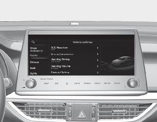 Pour modifier les paramètres de l’assistance à la conduite, appuyez sur le bouton OK au volant pendant plus de 1 seconde lorsque le mode Assistance à la conduite est affiché.