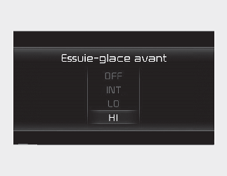 Vous pouvez activer ou désactiver la fonction de configuration de Essuie-glace/Lumières à partir du mode Réglages utilisateur sur l'écran LCD du combiné d'instruments ou les Réglages de l’écran du système d’infodivertissement.