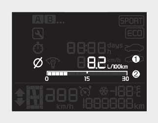 Plage d’économie de carburant : 0 ~ 99.9 L/100km, km/L ou MPG