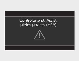 Lorsque l'assistance de feux de route ne fonctionne pas correctement, le message d'avertissement s'affiche pendant quelques