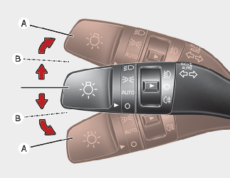 Déplacer légèrement le levier de clignotant et le maintenir dans la position (B).
