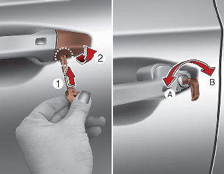 Si vous appuyez sur le bouton de la poignée extérieure de la porte du conducteur, la porte du conducteur se déverrouille.