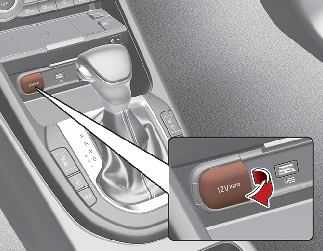 Utiliser la prise de courant uniquement lorsque le véhicule est en marche et retirer la prise accessoire après utilisation. L'utilisation prolongée de la prise accessoire lorsque le véhicule est à l'arrêt peut décharger la batterie.