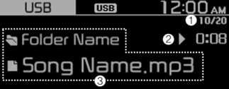 Informations sur le morceau (Affichage des médias) : Sélectionnez des informations telles que Dossier/Ficher ou Artiste/Titre/Album à afficher lors de la lecture de fichiers MP3.