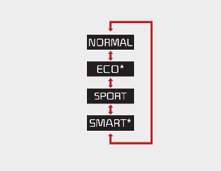 Le mode de conduite passe automatiquement au mode SMART NORMAL avec la même façon de conduire, lorsque le véhicule commence à rouler dans une montée avec une certaine pente. Le mode de conduite revient automatiquement au mode SMART ECO lorsque le véhicule emprunte une route plate.