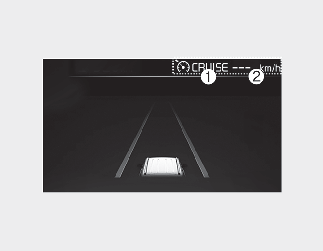 Le voyant CRUISE s'affiche.(2) La vitesse réglée précédente est grisée.