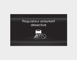 Si la fonction est temporairement annulée, le message d’avertissement 'Régulateur de vitesse intelligent annulé' s’affiche sur le combiné d’instruments, et un signal sonore retentit pour prévenir le conducteur.