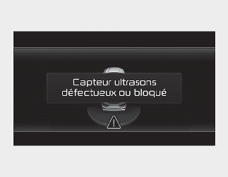 Le message ‘Ultrasonic sensor error or blockage (Capteur ultrasons défectueux ou bloqué)’ apparaît dans le combiné d’instruments.