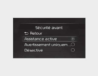 Si «Avertissement uniquement» est sélectionné, le freinage ne sera pas assisté.