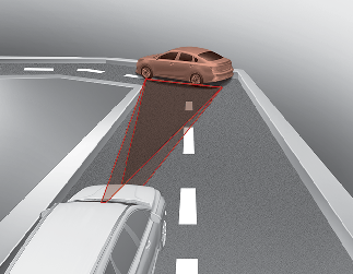 Lorsque le véhicule de devant possède une lourde charge tractée à l’arrière, ou si le véhicule de devant a une garde au sol importante, cela peut induire une situation dangereuse. Soyez toujours attentif à l’état de la route et à la circulation et, si nécessaire, appuyez sur la pédale de frein pour réduire votre vitesse afin de maintenir une distance.