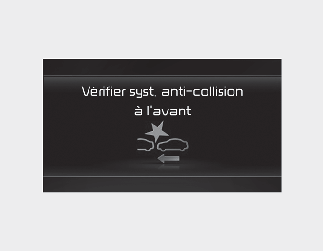 Lorsque l'assistance à l'évitement de collision avant ne fonctionne pas correctement, le message d'avertissement « Vérifiez