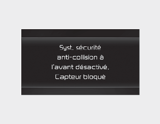 du freinage d’urgence autonome. Dans ce cas, le message ‘Forward Safety system disabled. Radar blocked’ (Système de sécurité