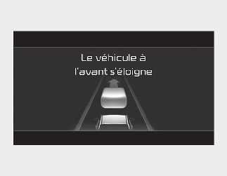 Lorsque le véhicule de tête quitte l’arrêt, l’alerte de départ du véhicule avertit le conducteur en affichant le message « Le véhicule de tête démarre » dans le combiné d’instruments et un signal sonore retentit.