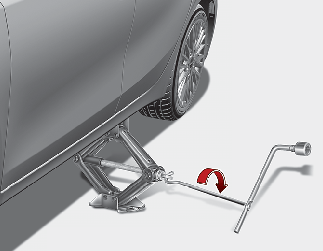 Abaissez le véhicule en tournant la clé d’écrous de roue dans le sens inverse des aiguilles d’une montre.
