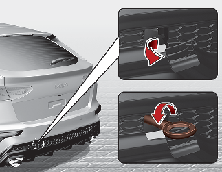 Pour installer le crochet de remorquage, introduisez-le dans le trou et tournez-le dans le sens des aiguilles d'une montre jusqu'à ce qu'il soit entièrement fixé.