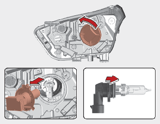 Déposez le couvercle d’ampoule de phare en le tournant dans le sens inverse des aiguilles d’une montre.