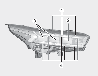 Si les feux de croisement (1), les feux de route (2), les feux de direction avant (3), ou les feux de position (4) ne fonctionnent pas, faites vérifier votre véhicule par un atelier professionnel.