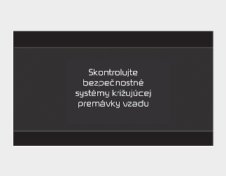 Ak upozornenie na náraz križujúcich sa vozidiel vzadu nepracuje správne, na prístrojovej doske sa objaví výstražné hlásenie „Skontrolujte upozornenie na náraz križujúcich sa vozidiel vzadu“ a funkcia sa automaticky vypne alebo sa obmedzí. Odporúčame, aby vaše vozidlo skontroloval autorizovaný predajca/servisný partner spoločnosti Kia.