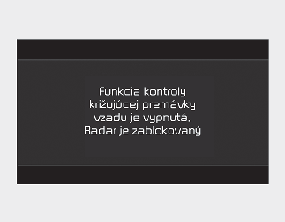 Ak k tomu dôjde, na prístrojovej doske sa zobrazí výstražné hlásenie „Rear Cross-Traffic Safety disabled. Radar blocked“ (Bezpečnosť križujúcich sa vozidiel vzadu je deaktivovaný. Radar je zablokovaný).